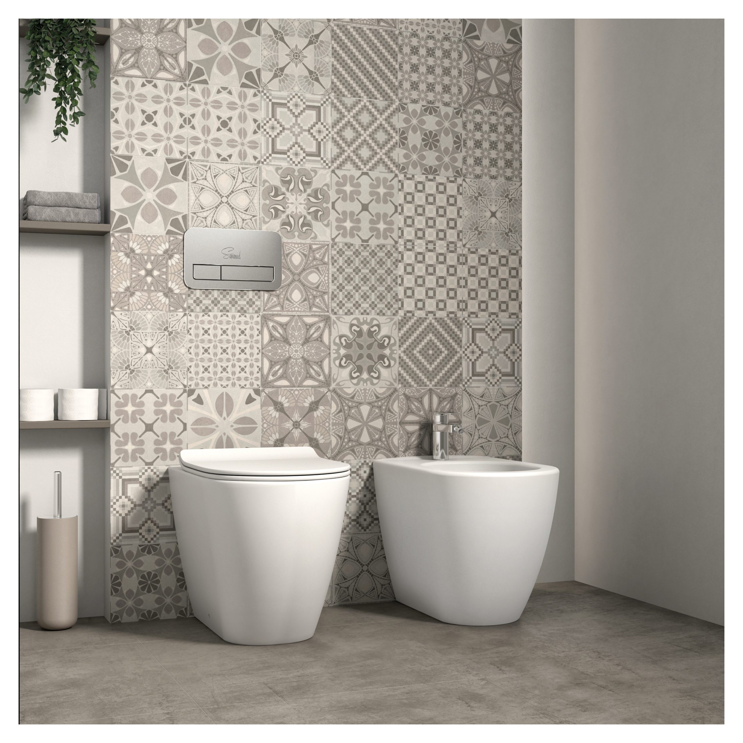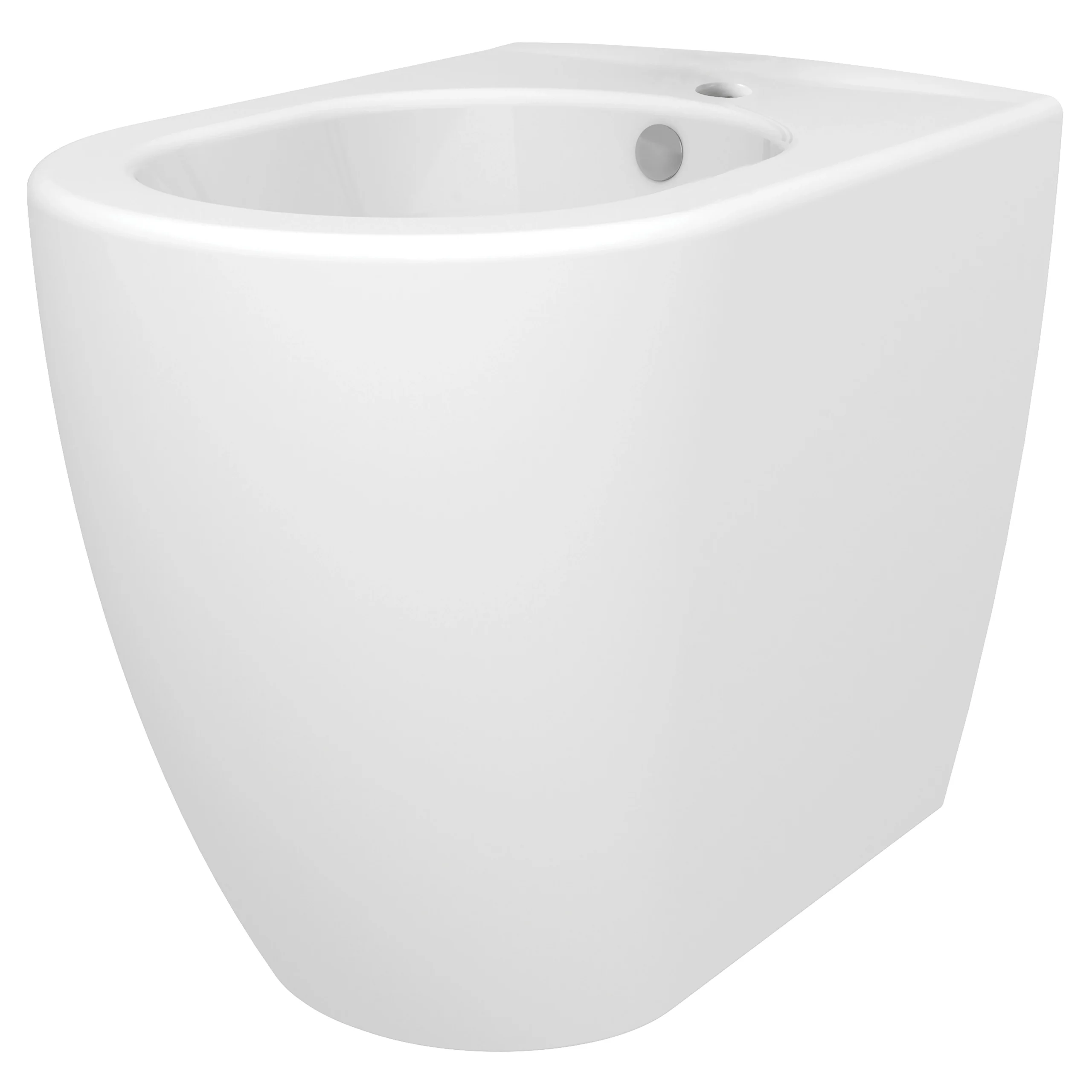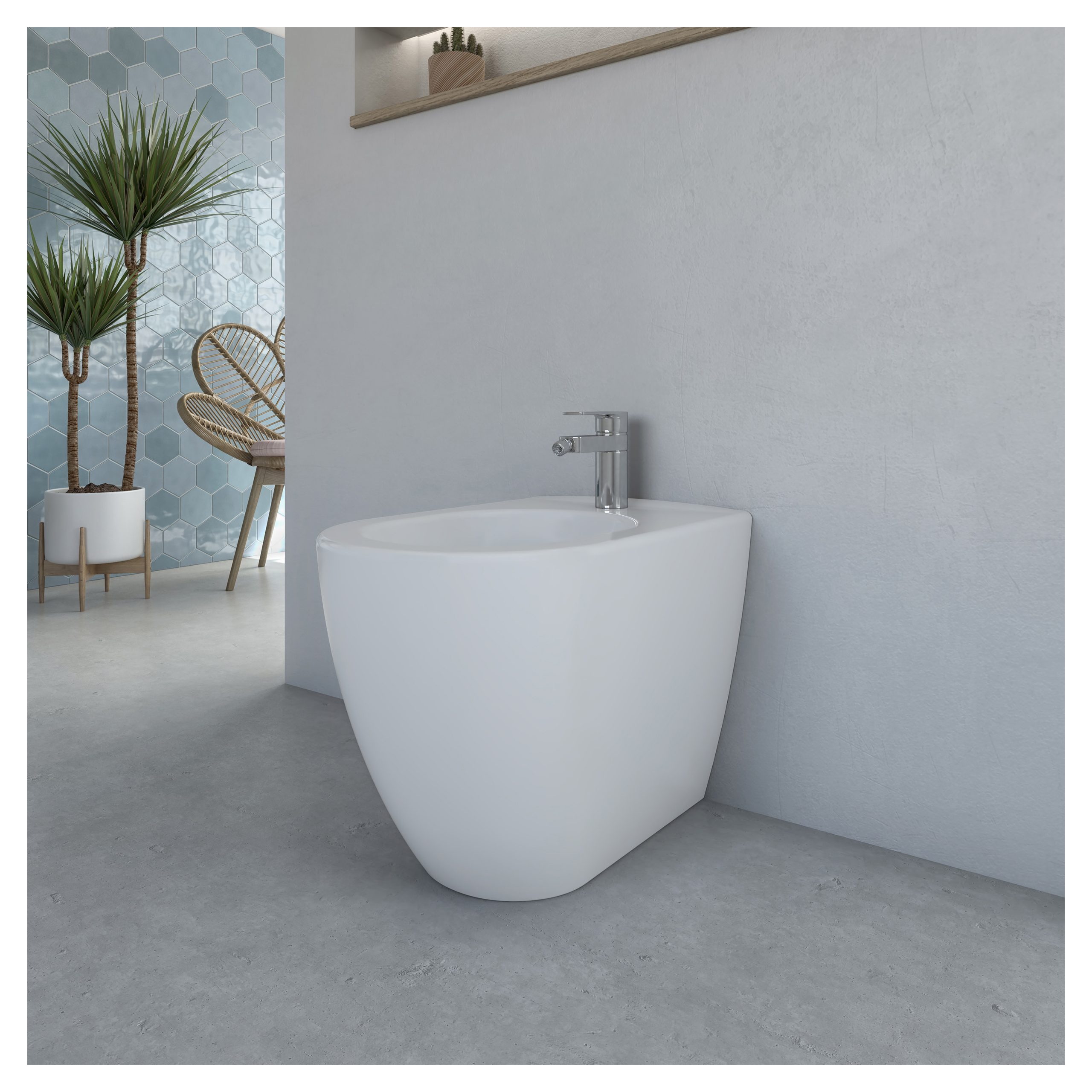 The Amsterdam series floor-standing, back-to-wall bidet is a practical and functional solution for your bathroom. Crafted from white ceramic, this single-hole bidet stands out for its back-to-wall installation, optimizing space and making cleaning easier. The wall-mounted drain makes for simple and efficient installation. Its 53x36x42 cm dimensions make it suitable for a variety of settings, offering a good balance between size and functionality. The bidet is designed for external connections. The lack of an overflow provides a clean, modern look. Fixing kit not included.